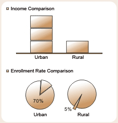 Why is education so unequal? The answer to this question can be found in the way the education system was run in the past. Even though rural households were poor, they were asked to pay high tuition rates, fees, books and other expenses. The share of income that rural households devoted to education was among the highest in the world of any poor country. And, rural villages had to build their own schools and hire many of their own teachers. Rural education, in short, was left to the rural people themselves. Being poor, they could only afford the most minimal levels of education. All of this is changing now with the new government's commitment to K-9 rural education. Tuition has been eliminated. Books are free. A new effort is being made to upgrade the "hardware and software" of rural schools. Everyday, it seems, a new program is being announced or model initiative is being launched. But, it is difficult to change overnight what has been in place for more than 50 years. And, resources are still limited and needs are still great. For this reason, effective policies and appropriate programs are needed to improve the legacy of rural education's past.